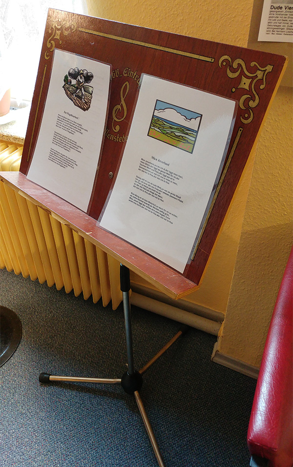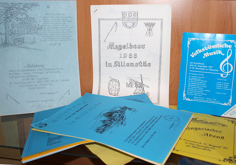Nach dem Maibaumaufstellen eröffnete Bürgermeister Gerhard Böhling die Ausstellung des Chronikkreises Sillenstede und bedankte sich für die vielen ehrenamtlichen Stunden, die Doris Wolken und ihr Team in den letzten Monaten geleistet hatten. In diesem Jahr hat der Chronikkreis den Werdegang des Männergesangsvereins „Eintracht Sillenstede von 1849“ nachgezeichnet, der sich mangels Mitglieder im vergangenen Jahr leider auflösen musste. Aber anhand von vielen Bildern, Anekdoten und Ausstellungsstücken ließen die Geschichtsfreunde den Chor wieder aufleben und zeigten, wie wichtig der Verein für die Dorfentwicklung war. Bundesweite Sängerfeste im Ort oder das alljährlich Flegelbeer waren wichtige Ereignisse, die das Dorfleben geprägt haben. Dementsprechend dankbar zeigte sich der Bürgermeister, dass der Chronikkreis dieses Wissen bewahre und anschaulich aufarbeitete.